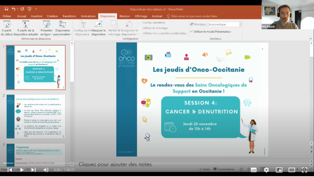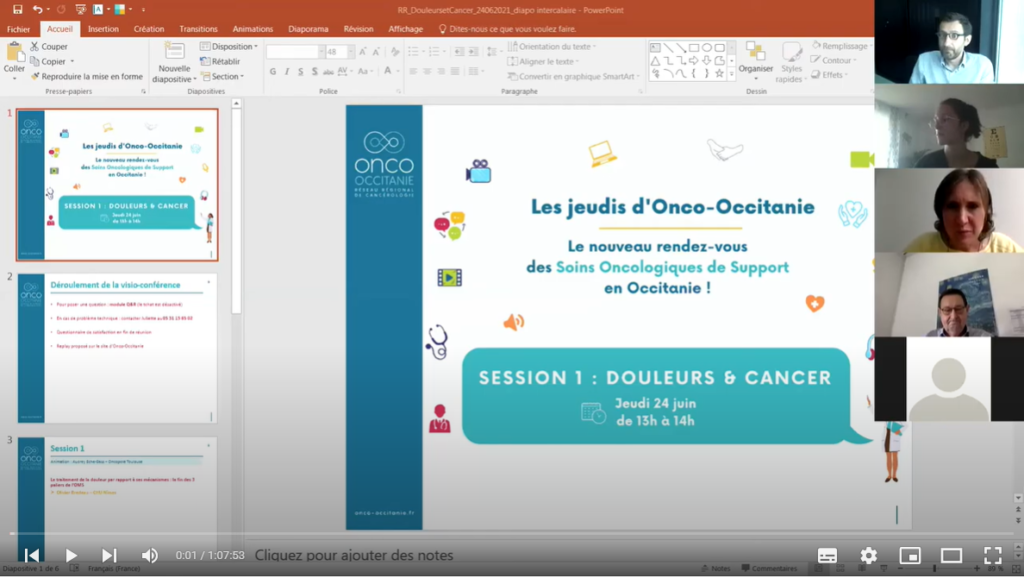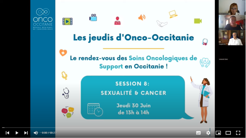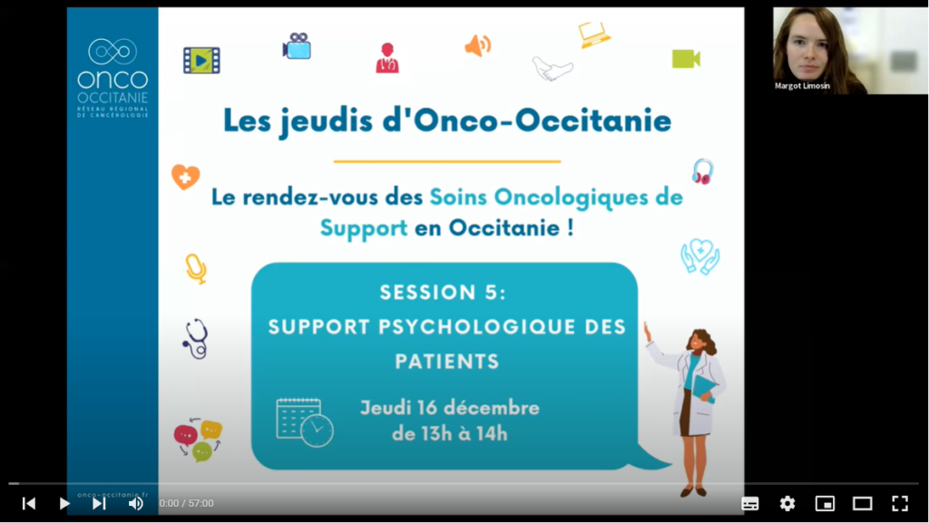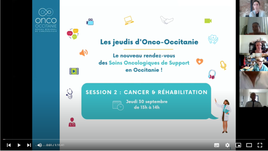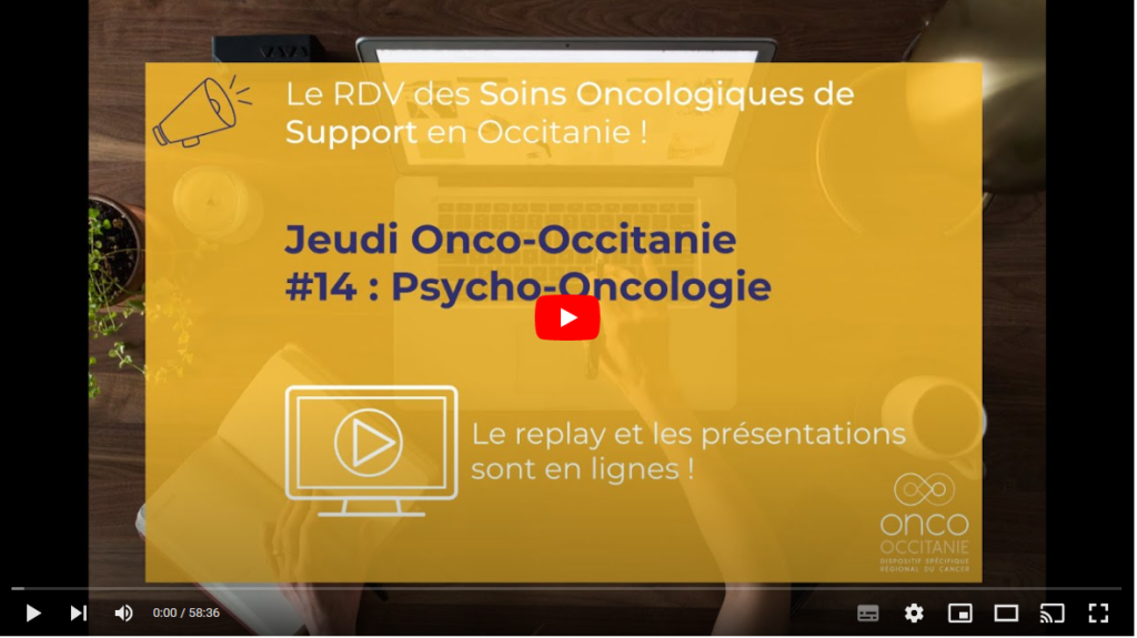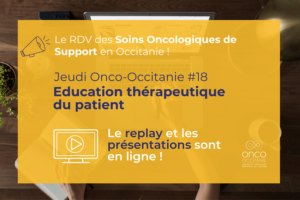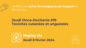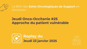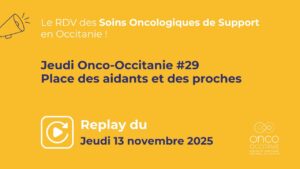Les Jeudis Onco-Occitanie réunissent les professionnels de santé autour de thématiques liées aux soins oncologiques de support. Ces webinaires d’une heure permettent à un ou plusieurs expert(s) de présenter un sujet et offrent un temps d’échanges entre participants et intervenants.